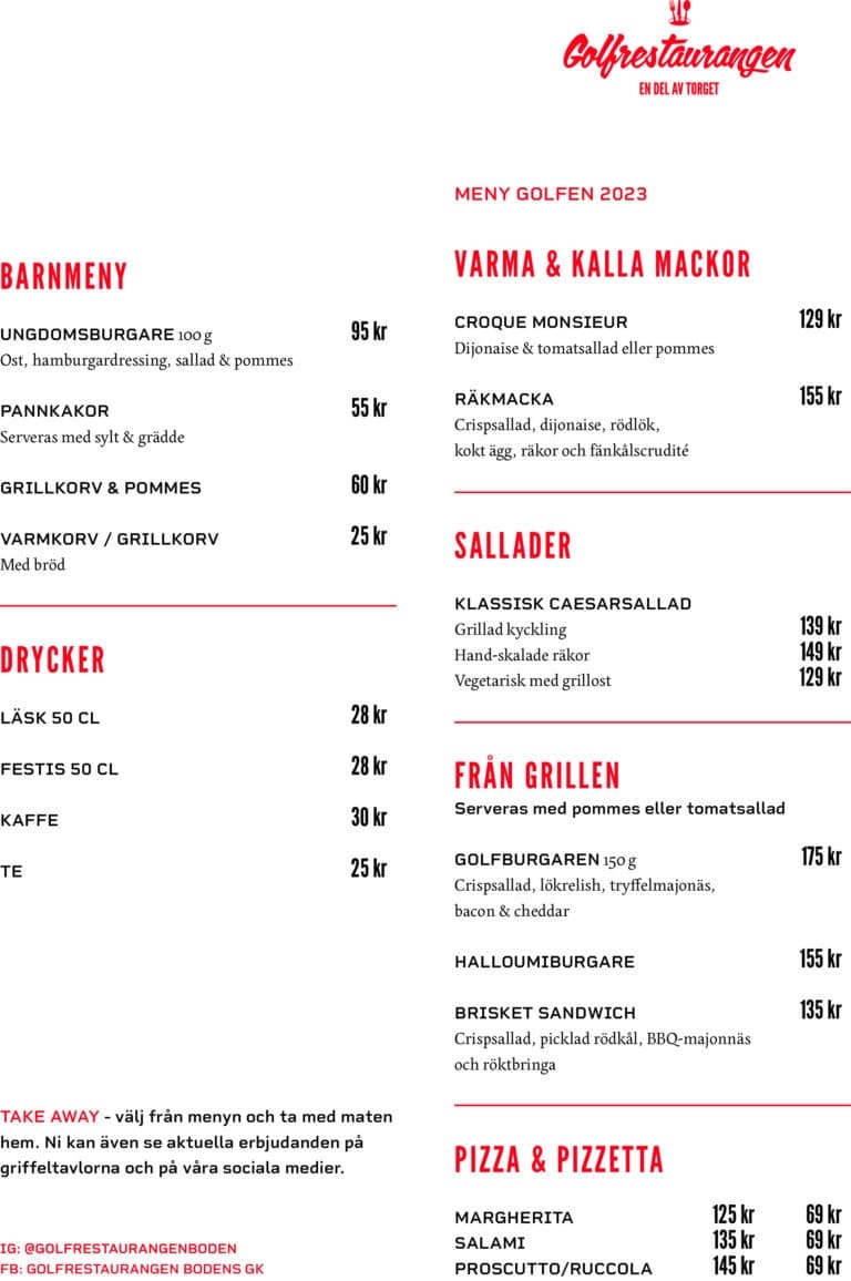 Visst vet du att du kan beställa din lunch när du är ute på banan, och få den serverad så fort du är klar med din runda. Vid tee på 9e och 18e hål finns menyer och information om hur du beställer.